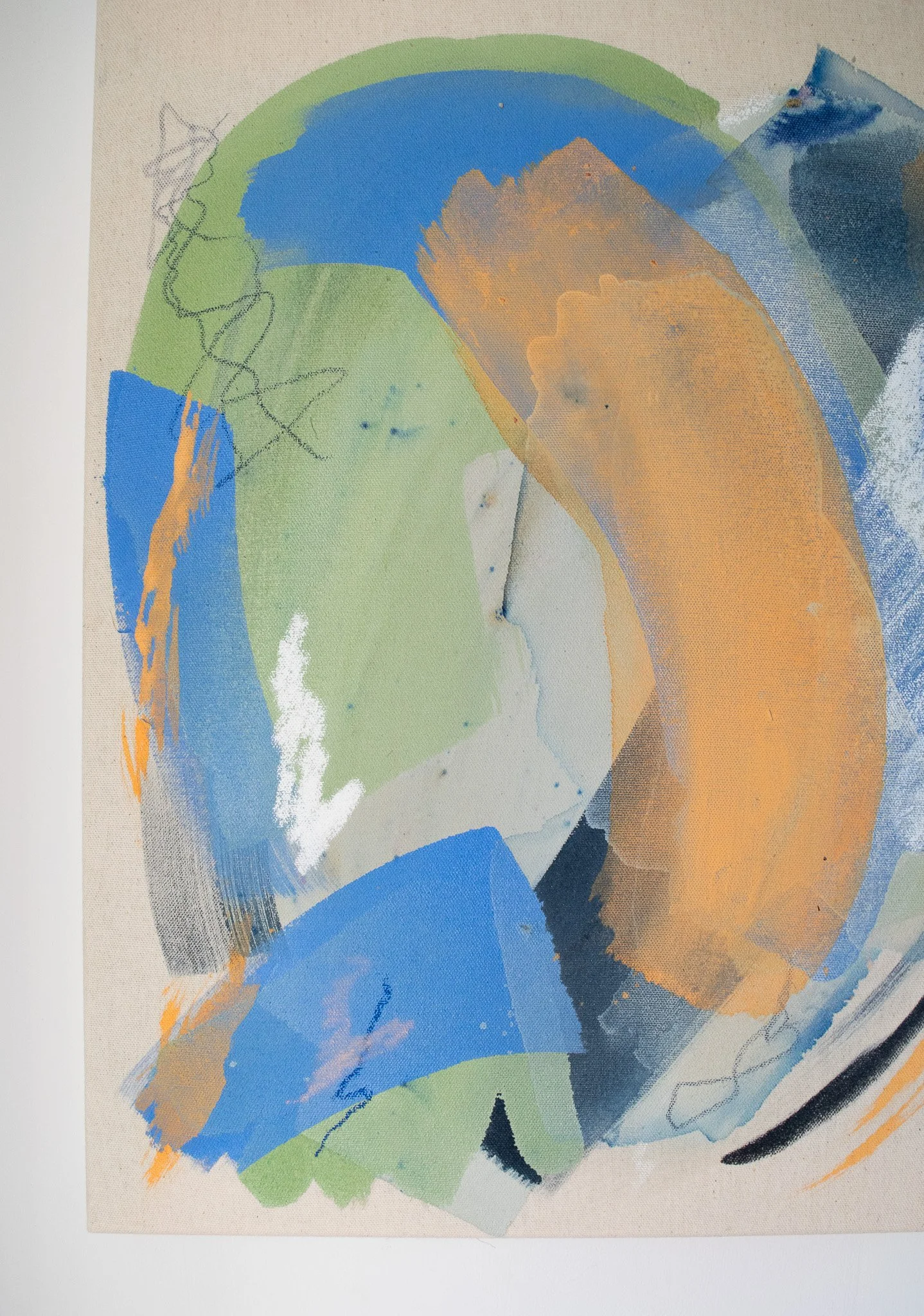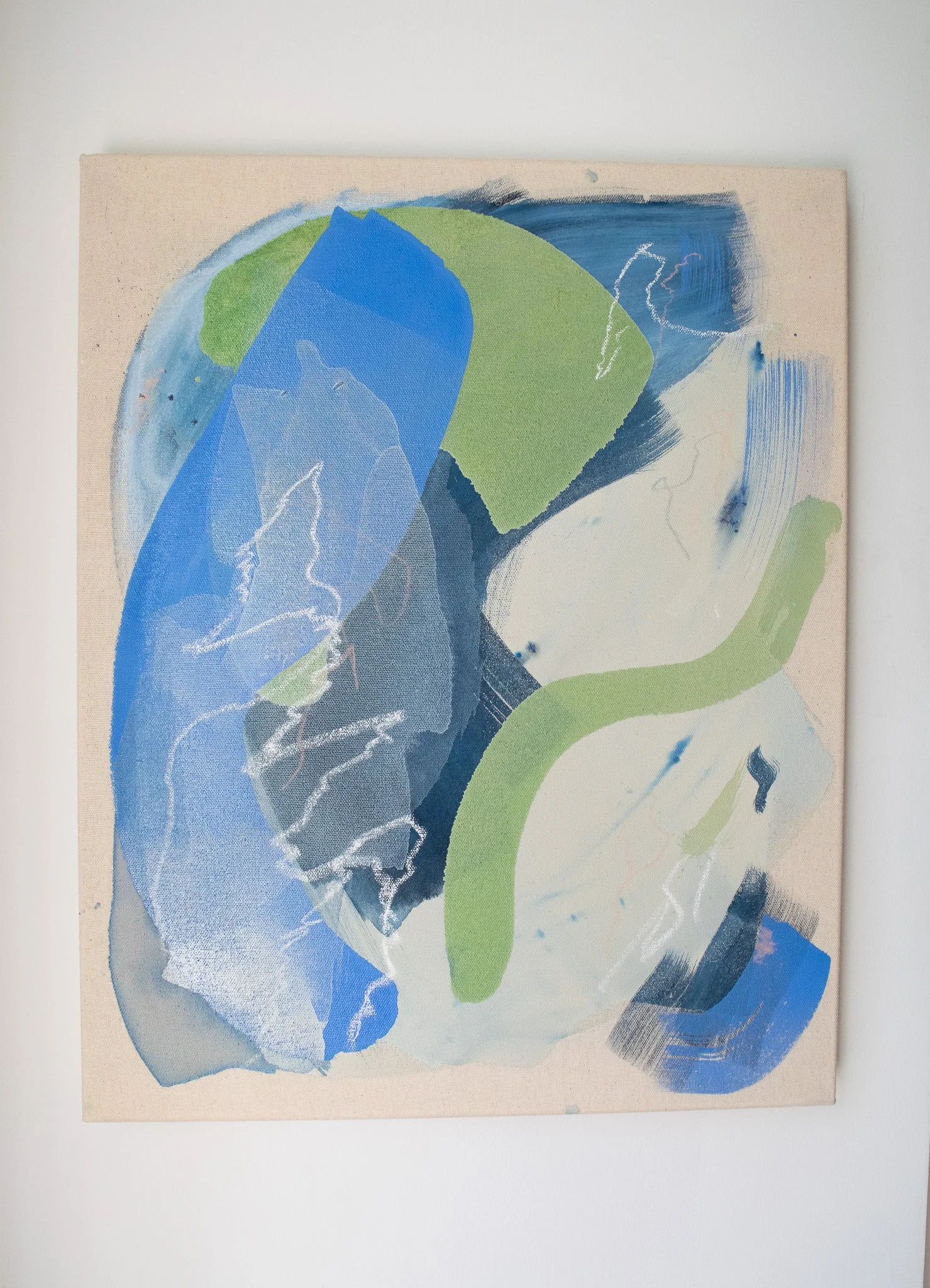 I generally work on raw canvas or paper using acrylic, dye, and pastels. Each piece will note materials used in its descriptions.